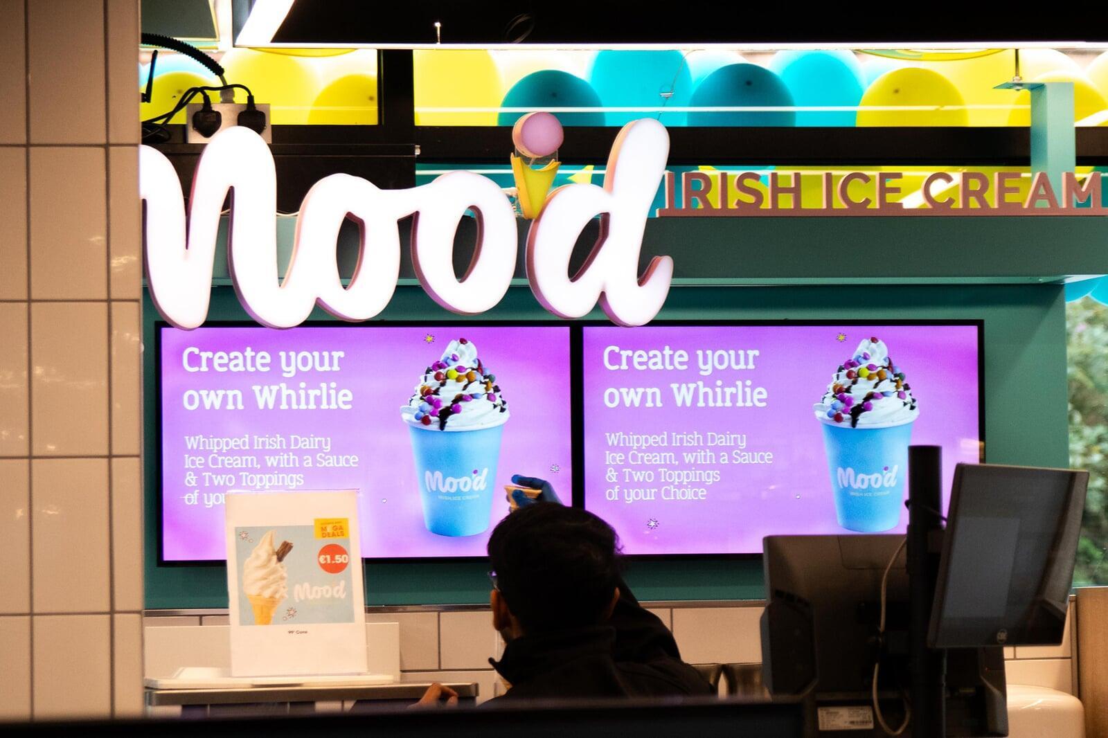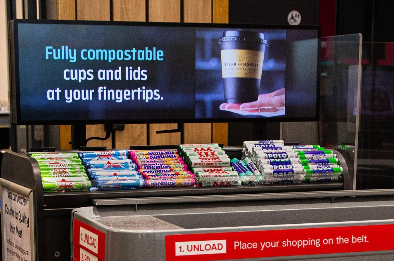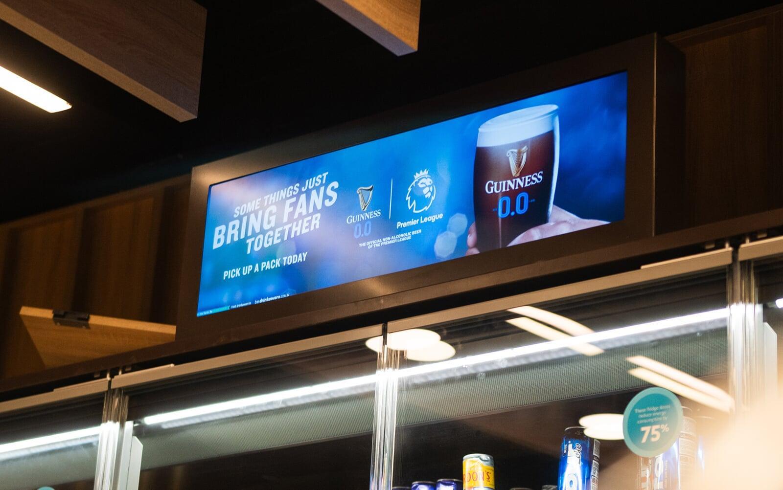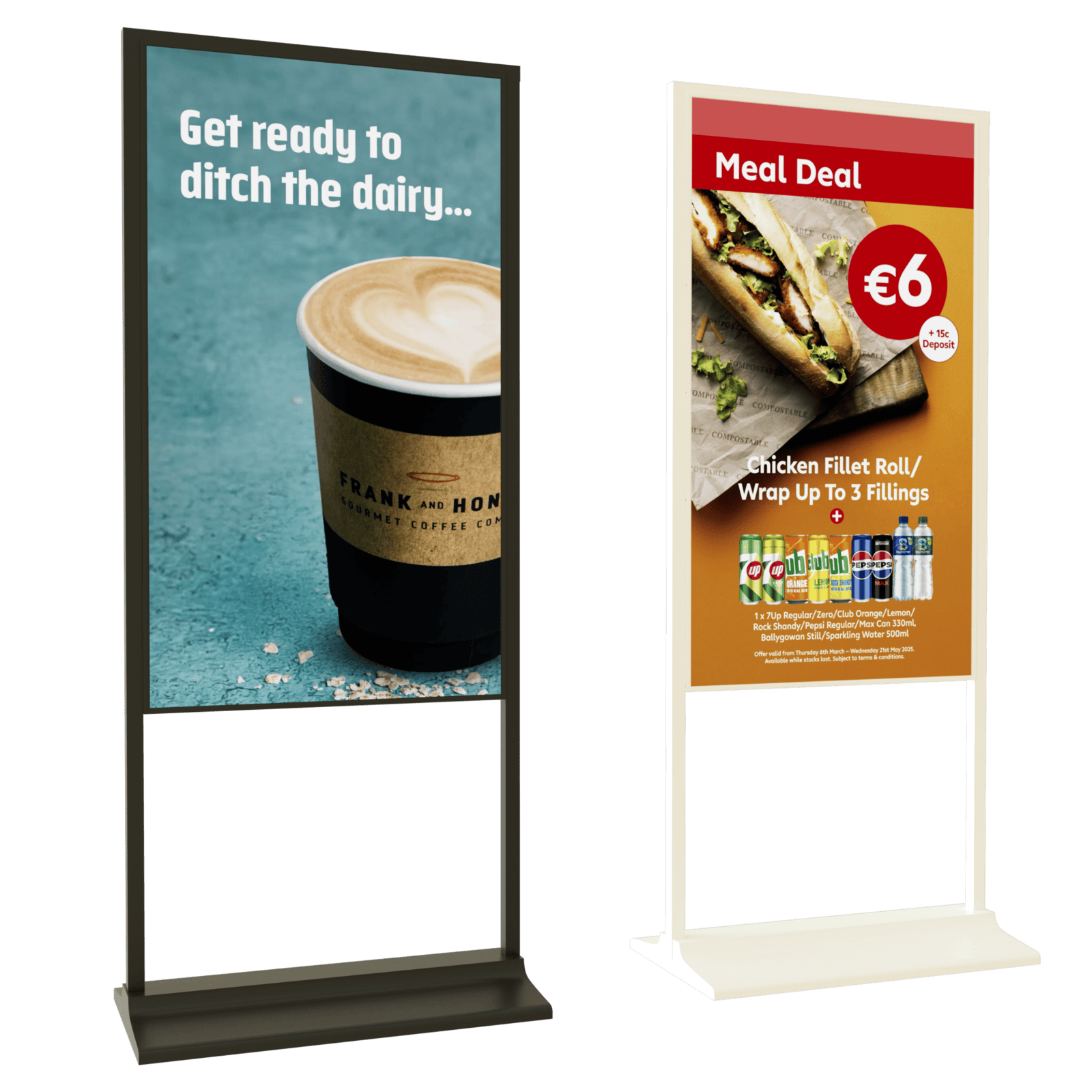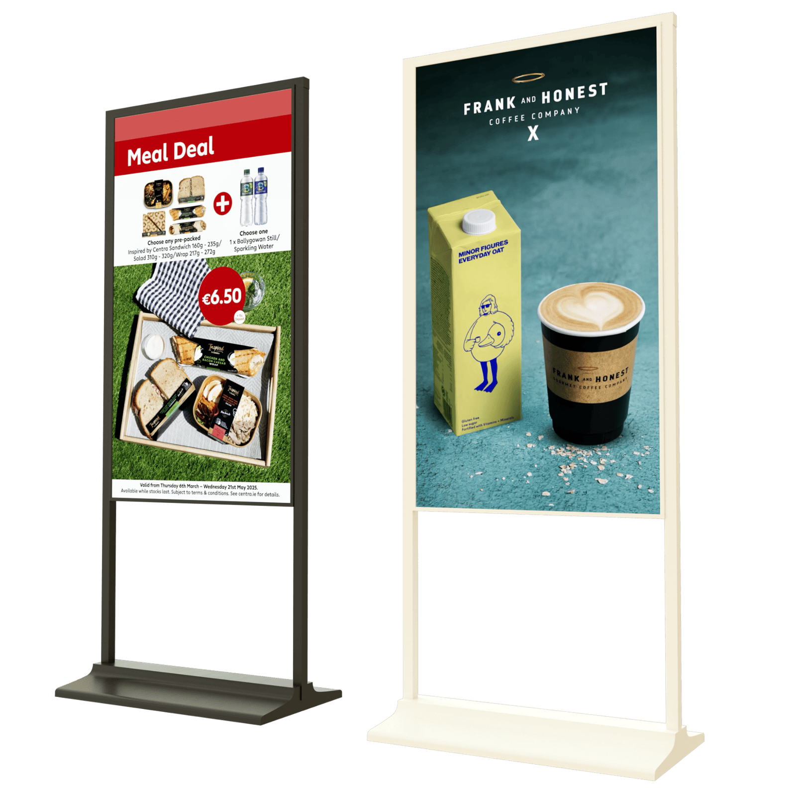 Dual-sided screens maximise visibility in high-traffic aisles, driving engagement with frozen product promotions.