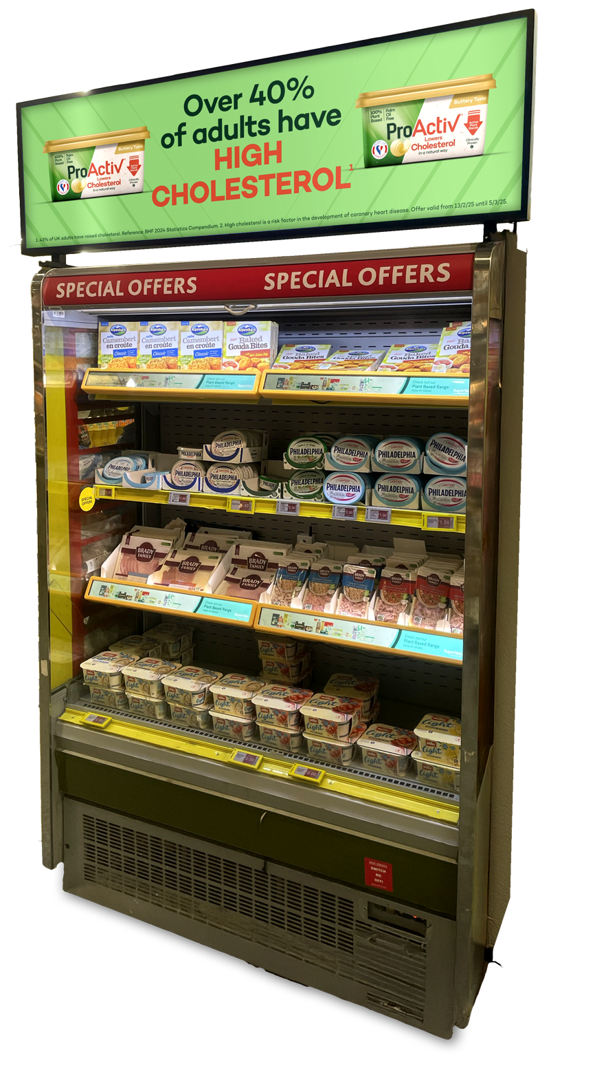 Strategically placed on chilled gondolas to directly influence purchasing decisions at the point of selection.